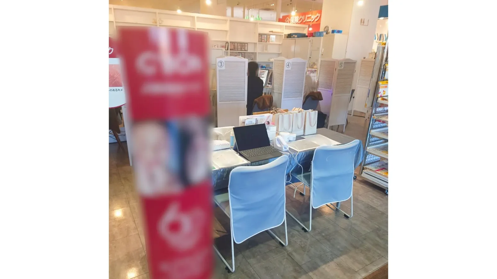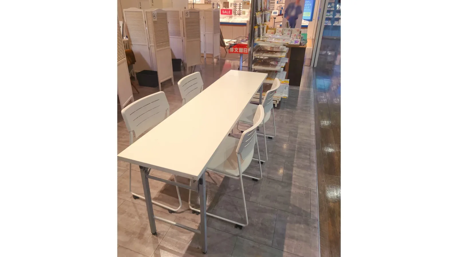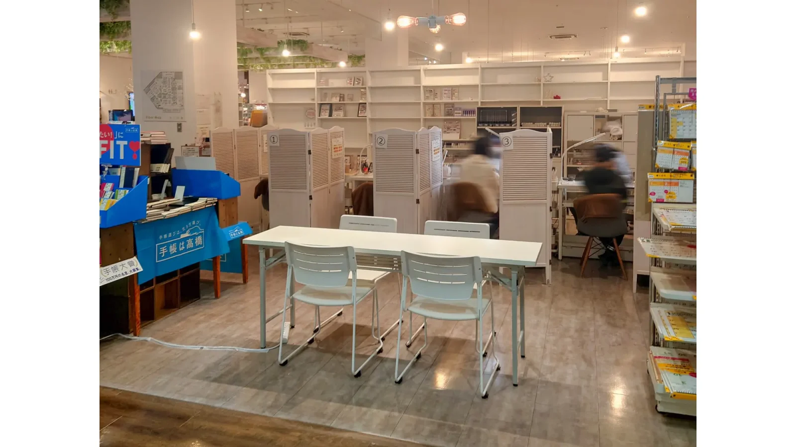 長机と椅子を設置した相談会・会員獲得型の催事に適しているほか、展示や物販の場合は可変式のブロック什器を使用し、用途やブランドイメージに合わせて柔軟なレイアウトが可能です。